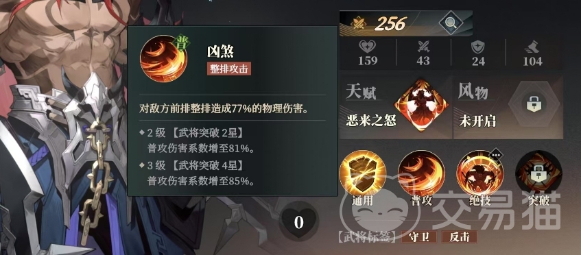 随着典韦在武将突破方面不断提升星级,其普攻的伤害系数也会逐步递增,当典韦达到 2 星武将突破时,他的普攻伤害系数将提升至81%,这意味着他在战斗中能够打出更高的伤害输出,当他进一步提升至 4 星武将突破时,普攻伤害系数更是能达到 85%,此时典韦的普攻威力已经相当惊人。