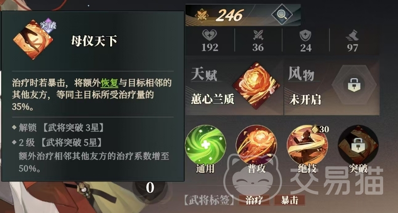 这一连串的治疗波,也提升了队伍的整体续航能力,更为难能可贵的是,随着武将等级的提升,这一绝技的威力还会进一步增强,当步练师突破至2星时,治疗系数将提升至56%,而达到4星时,更是飙升至58%,这意味着在关键时刻,她能够拉回更多队友于生死边缘,母仪天下这一突破技能,彰显了步练师在战场上治疗的效果,当她以精湛的医术为队友恢复生命。