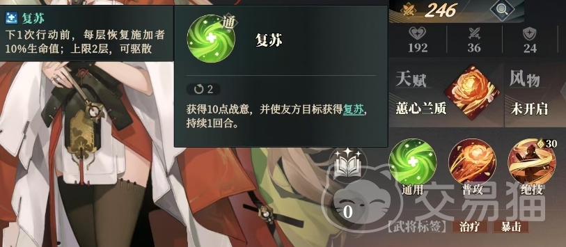 她的通用技能复苏,每当施展此技,不仅能为自身积累10点宝贵的战意,更重要的是,它能让指定的友方目标沐浴在复苏的光芒之下,持续一整回合的时间,在这期间该友军每回合开始前都会感受到来自步练师的加成,每层效果能缓缓恢复其10%的生命值,最多可叠加两层,这一技能极大地增强了团队的生存能力,同时还能驱散一些负面状态。