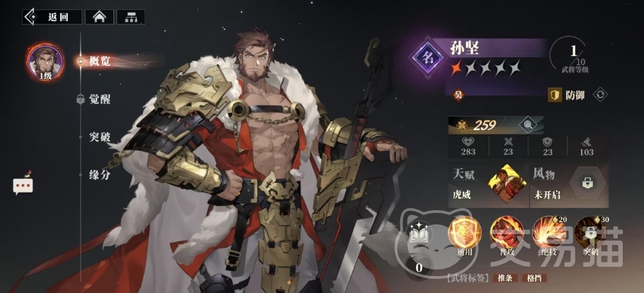 随着武将觉醒等级的提升,孙坚的虎威天赋也得到了强化,当达到2级武将觉醒天赋升级时,友方受到带有威慑效果的敌方攻击时,孙坚提升的格挡率将增至30%,这意味着他在面对敌方攻击时,将有更多的机会成功格挡,从而保护队友免受伤害,而在3级武将觉醒天赋升级时,孙坚为友方提供的治疗效果也得到了显著提升,治疗系数增至10%。