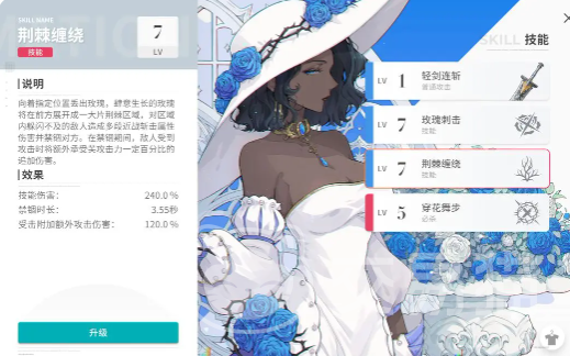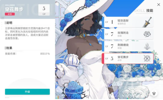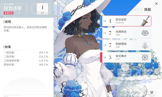 E技能:有两段伤害可以选择同时触发。技能倍率是比较高的,基本上不容易被闪避打断。在前摇时还会召唤一朵玫瑰花。