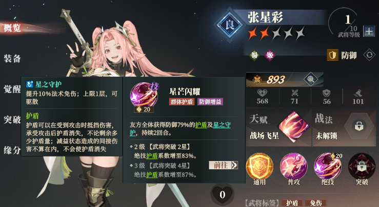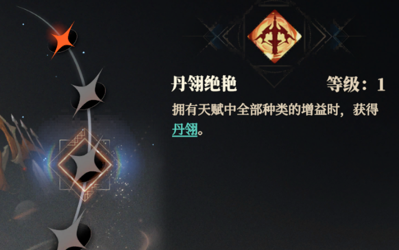因此,虽然她的技能倍率不算出众,但如果搭配一些可以提供增益的辅助,就能将伤害最大化。然后来看看突破技“丹翎绝艳”,获得天赋中所有种类的增益时可以获得“丹翎”效果,获得15%速度加成,突破5星还可以额外获得50%的减益抵抗。
