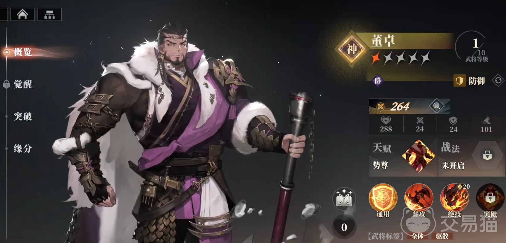三国志幻想大陆2枭之歌董卓是群雄阵营的神将角色,他的定位是防御,有着十分独特的全体驱散效果,很多玩家被这个能力吸引想了解一下他的强度,那么董卓怎么样,下面就来详细解析下他的技能与强度,帮助大家了解清楚这一角色,对董卓感兴趣的赶快来看一看吧。