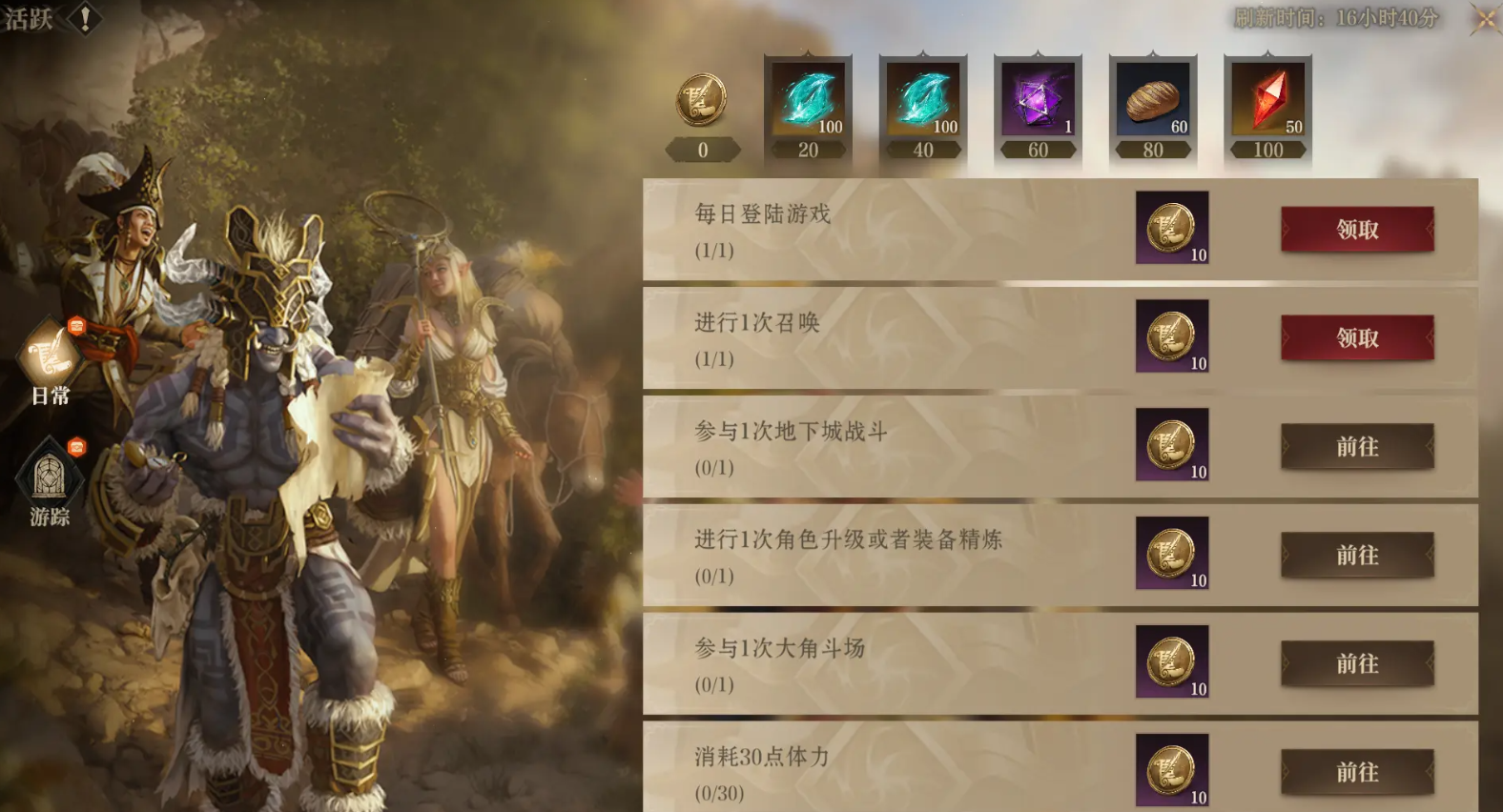 前期新手一定先进行主线,主线任务会提供赤鸦硬币和各种资源奖励,硬币能在旅程商店中兑换还未拥有的史诗和珍稀英雄,和提升等级的道具十分关键,而且大家在体验剧情的过程里面,还会慢慢解锁召唤、地下城等玩法,除了主线外日常活动主要进行活跃任务、刷体力和时空涡流,活跃任务时每日刷新的,大家可以从任务里面选择相对比较想进行的完成,只要累积获得100活跃度就能拿到全部奖励,刷体力则主要分配到3个地下城副本,分别是能提升英雄等级的地精据点、提升天赋的元素领域以及获得高品质装备的装备类地下城,只要体力恢复了就可以去这三个玩法中刷掉,最后的时空涡流会根据当日单次伤害数值,来发放奖励,伤害越高奖励就越丰厚。