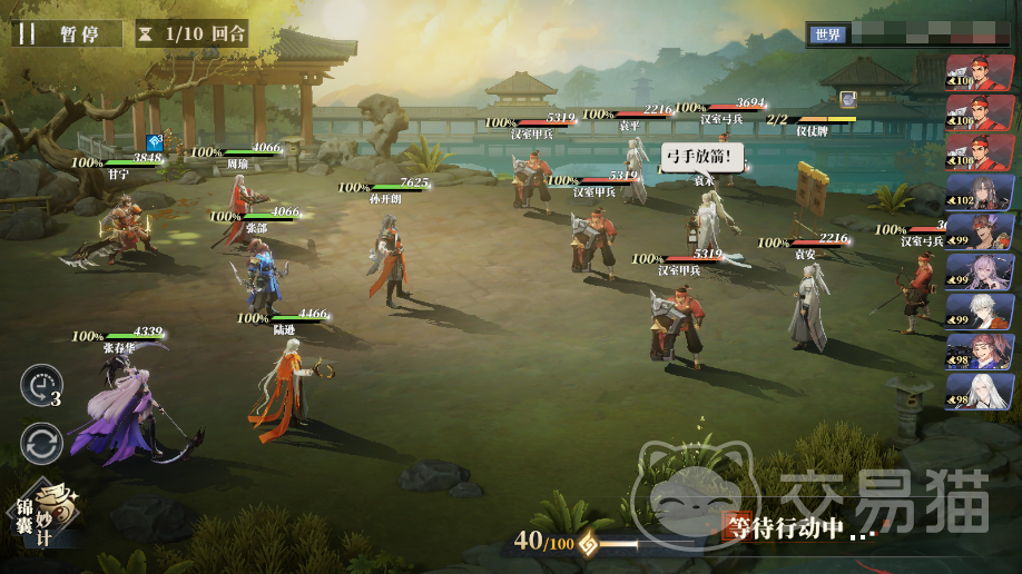 这样前排的甲兵会直接撤退,后面直接集火袁术打几下就能过了,是不是很简单?需要注意一点的是孙开朗的绝技需要消耗20点战意,在他前面的几个队友要注意技能的释放,别把战意都用完了。