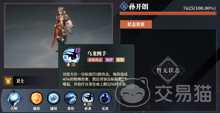 游戏初期大家拥有的武将数量有限,有时候打了仪仗牌,就缺少对付其他单位的输出手段,这里关键是要用到“孙开朗”,他的必杀“乌龙缠手”,可以对单个目标进行3段攻击,这样就能直接打掉“仪仗牌”。