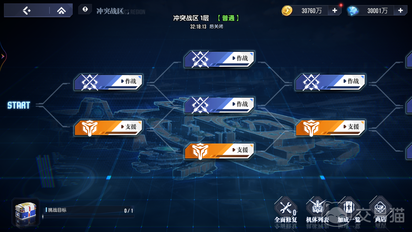 目前需要大家达到38级之后才可以参与这项活动,这是一个融合了肉鸽元素的闯关类玩法,玩家可以自由选择在冲突战区中的行动路线。和常规模式相比,在战斗结束之后,机体耐久和能量将会保持在战斗结束时的状态,在此模式下受损的机体可以使用道具战区修复装置来进行修复。所以大家一定要注意阵容搭配过程中的减员问题,尽量选择续航能力比较强的机体组成队伍,这样可以减少减员的情况发生。