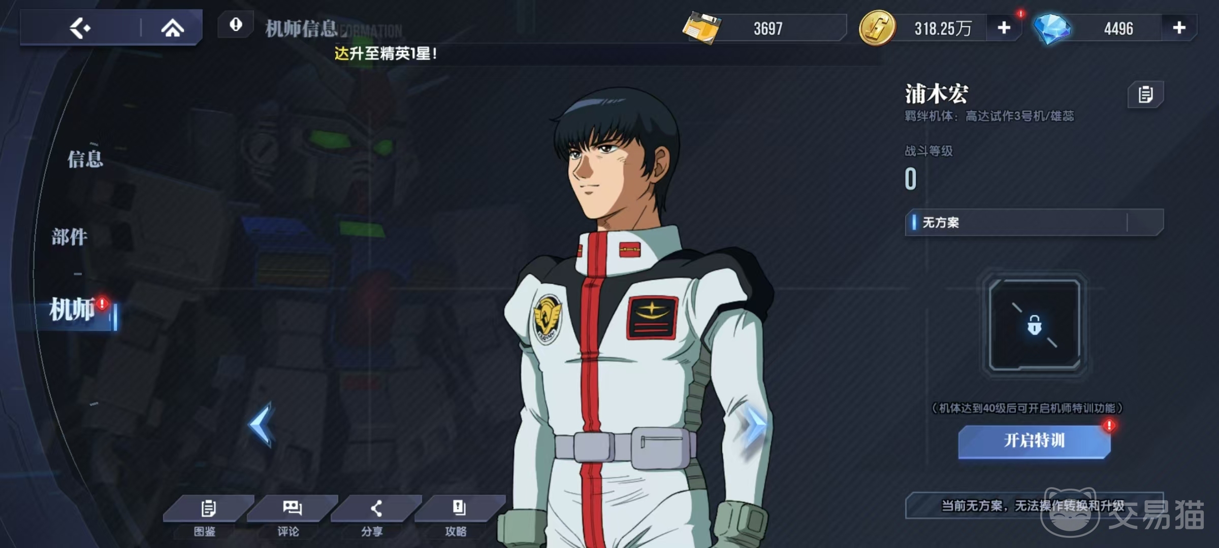 最后一个选项是机师,机师指的就是机体的驾驶者,一般来说高级机体都会有自己专属的机师,机师可以进行属性升级,这样也可以加成到机体的属性中,这也是不容忽视的一个方面。还可以同步转换来获得不同的属性升级,通过选择不同的方案,能够让机体的提升更加精确。