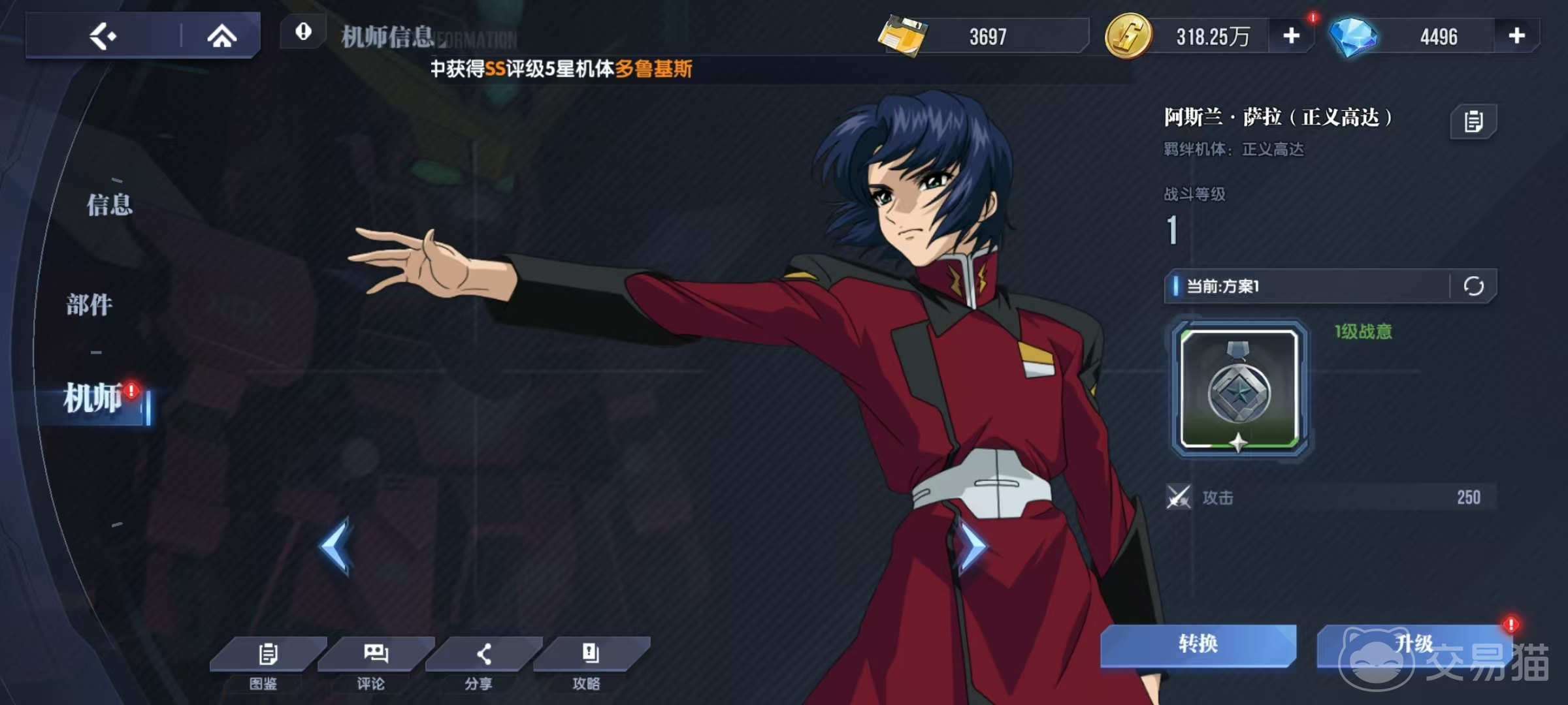 游戏中的机师也是自拥有着自身对应的档案,大家在图鉴中可以直接查看到。一些顶级的机体都是由自己专门的机师来进行操作,机师也会有对应的羁绊选项,例如正义高达,他自身所对应的技师就是阿斯兰萨拉,其他的高品质机体也都是如此。