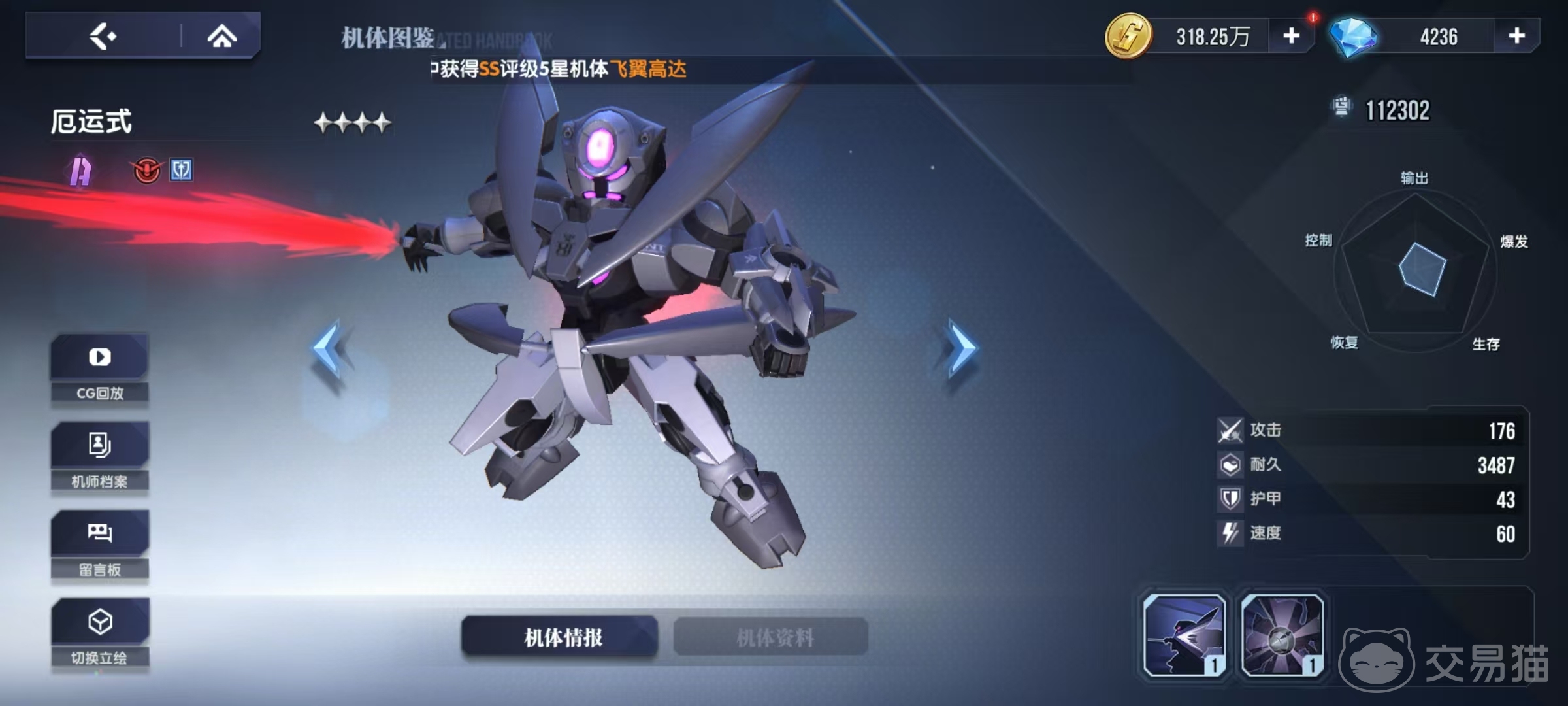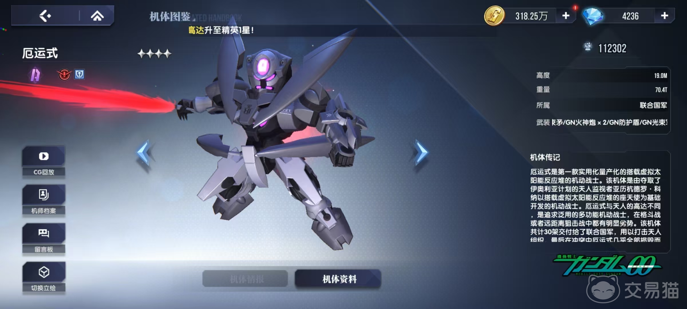 在高达钢铁之诗这款游戏中,玩家所能够抽取到的高达也有着实力上的区分,按照品质分为了不同类型,厄运式是属于比较低的a级品质,小编今天来给大家介绍一下高达钢铁之诗厄运式怎么样。可能很多玩家并没有过多的关注这个四星级的机甲,其实它也是有着两个技能。