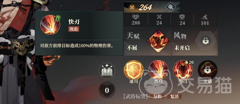 周泰所拥有的天赋名为不屈,这一独特的天赋在战斗中,当周泰受到致命伤害时,他能够瞬间恢复自身生命上限50%的生命值,从而在绝境中寻得一线生机,同时他会获得一个名为命尽的特殊状态,该状态持续2回合,且每场战斗仅能触发1次,值得注意的是,命尽状态有着独特的规则,就是当其持续时间结束时,周泰将会败退。