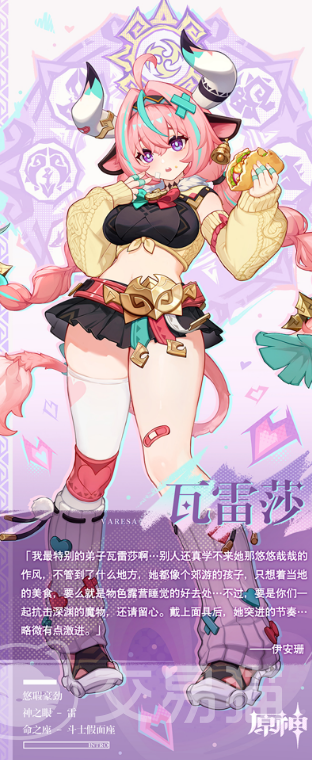 首先登场的是瓦雷莎,这位五颗星的雷系法器角色。她的形象和气质给人一种既活泼又充满冲劲的感觉。你可能会注意到,瓦雷莎的身形设计非常独特,虽然看起来是个少女,但她的大腿和腰部的比例却显得相当成熟,几乎可以预见她在战斗中的强大表现。