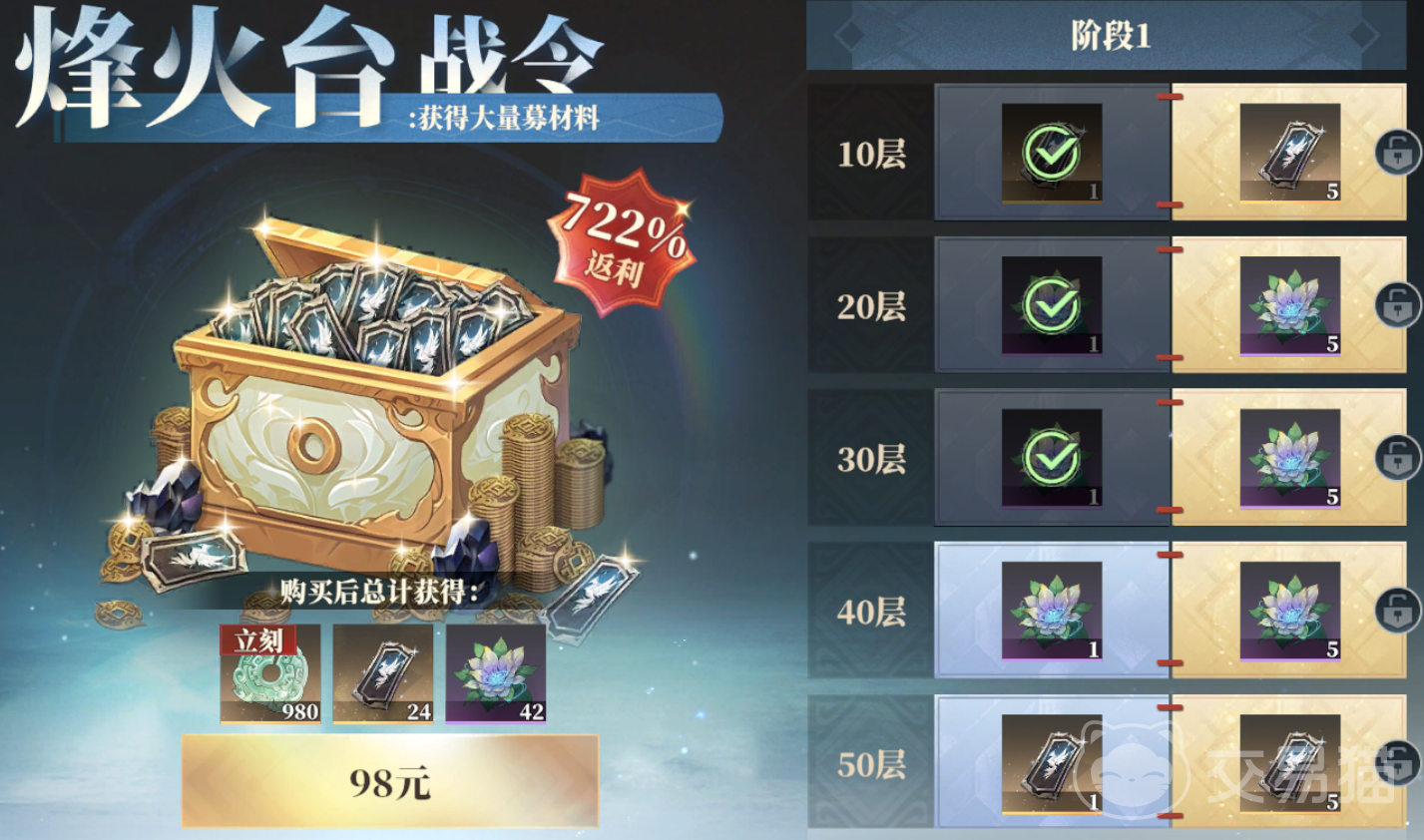 除了上面提到的外,还有98元的主线战令和同样98元的烽火战令,都可以原有奖励的基础更进一步,获得更多奖励,返利幅度也是蛮高的。想尽快将队伍培养成型的玩家可以考虑入手。