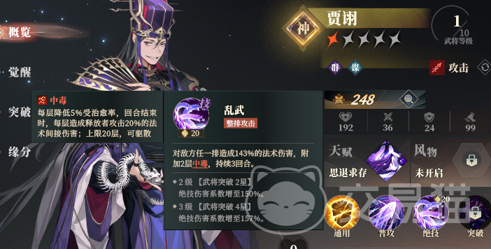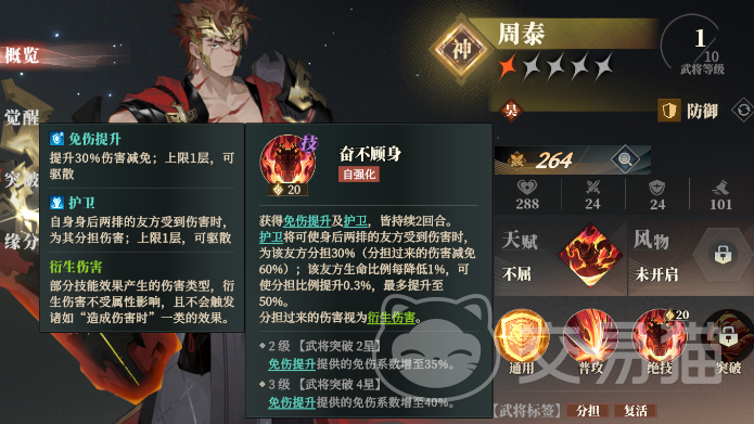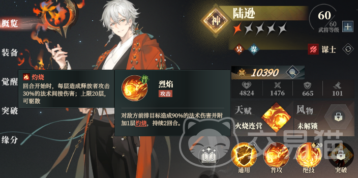 最后是周瑜突破3星解锁主动突破技,可以立刻引爆所有敌人结算灼烧层数与伤害。周瑜的这个突破技需要前面这3个都齐全后才能发挥最大威力,不然叠不了几层,不仅能耗高,结算伤害也一般。