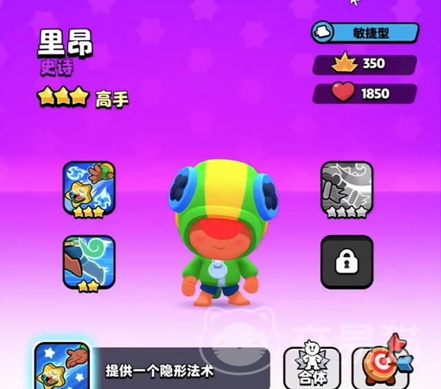 他是个史诗角色,强攻型的刺客,攻击敌人时的伤害非常高,只要给到他成长的空间,那么到后期大部分的英雄基本都不是他的对手。他在1星是能获得隐身法术,2星时能让自己在隐身时的移动速度加快;3星时没攻击25次,就能自动获得隐身法术;4星时在隐身状态下的移速能再次提高;他本身的技能强化基本都在隐身获取以及速度提升方面。