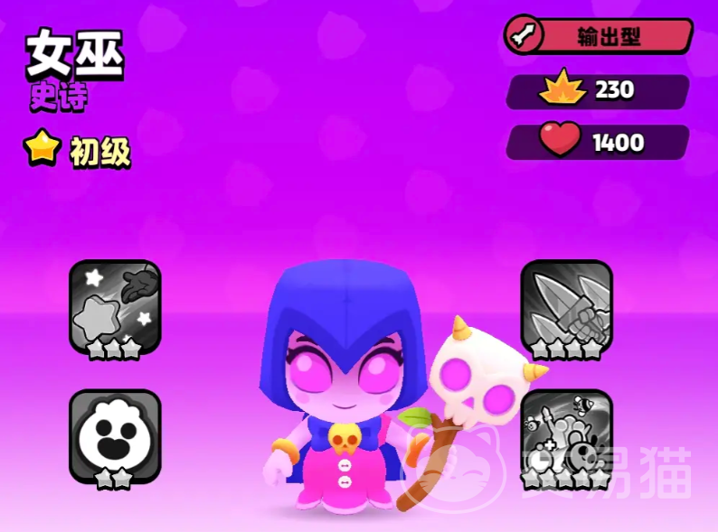 她的基础技是每隔7秒召唤出2个骷髅兵,这个骷髅兵会有225点生命值,每次进行攻击会形成13点输出值,2星会提升为每7秒招式出3个,3星会提供给骷髅们法术,每次它们利用法术会形成30点落地伤害,4星骷髅兵生命值会提升至350,每次攻击伤害也会提升到25点,这些士兵不需要指示就会成群结队扑向敌人,既能帮助在抢夺宝石时占尽先机,也能在和其他玩家群架时将气势拉满。