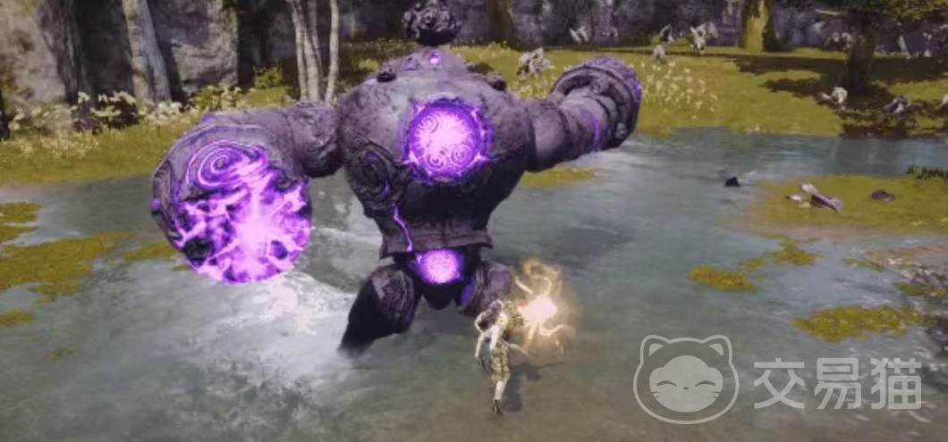 暴走守护兵身高三米,穿着散发紫色火焰的机械铠甲,双拳缠绕着能量链锁,移动时能达到地面崩裂的效果。第1个技能裂地重锤,攻击正面180度扇形区域,每一次挥拳都能打出紫焰轨迹,这时应对措施就是绕到boss的后面,通过背后来进行输出,近战绕后更加方便。第2个技能跳跃冲击,需要蓄力三秒钟,然后进行跳劈,这时一定要注意,当档字读条时,地面会出现红圈预警。这时要用轻功闪出红圈或者是掐准时机进行格挡,如果团队中有肉盾的话也可以直接扛伤。