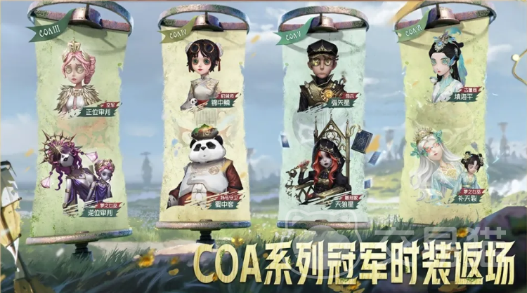 象牙塔系列也有7套具有特色的皮肤限时上架;另外还有COA冠军系列的时装返场,这里有8套不同角色的时装,具体的时装名单都放在本期的图当中了,大家可以自行通过图鉴查看,如果有往期之前没有获取的,那么可以考虑在周年庆之际入手。