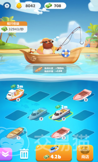 在游戏里随着玩家获取的鱼类越来越多,就能不断的兑换成实际的收益,能用这些收益来购买更高级的船只和鱼竿,另外这些收益还能解锁不同的海洋区域,船只越大能承载的鱼类就越多,玩家能航行的距离也就越远,鱼竿等级变高之后,鱼线的长度也会变得更长,这样就能掉到深海的鱼类,能换取的收益也就越多。