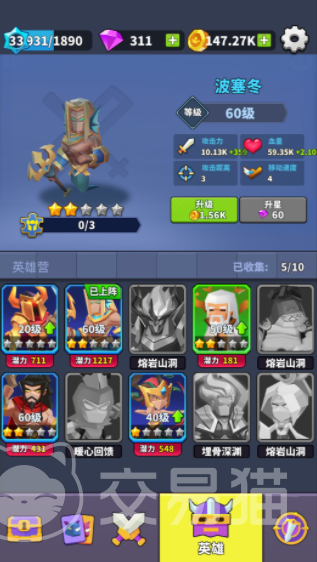 假如感觉这些英雄的能力不足的话,就可以通过消耗材料提升英雄的等级,星级越高,英雄的各项能力数值也会有所增长,但英雄只作为整个队伍的领导者,除了单个英雄角色之外,还有大量的小兵角色,需要在战斗的时候合理的排兵布阵,这样才能确保在对战过程中,能顺利击杀对方成员,赢得统治权,并且能收获到一些资源,提升角色。