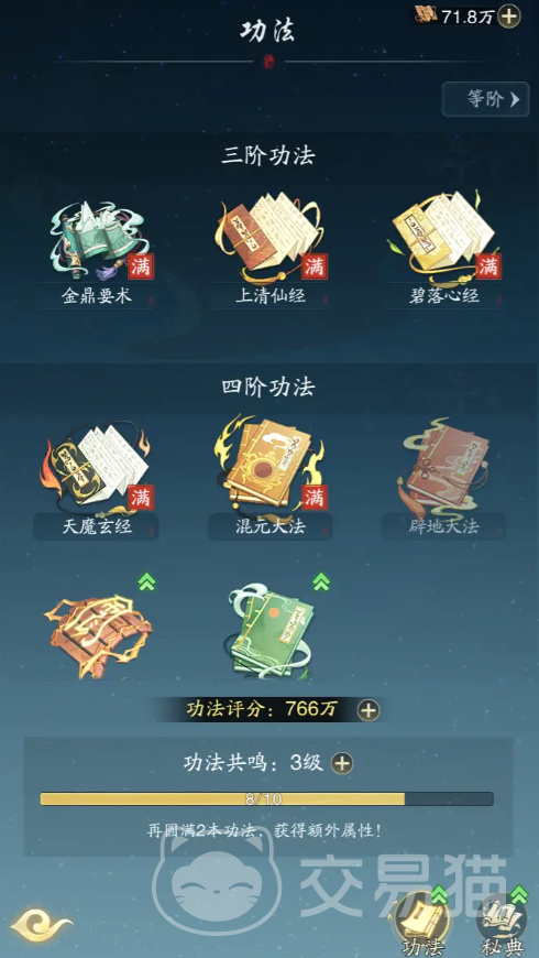 不同的功法不仅会赋予大家基础属性,还会带来独特的战斗效果,功法材料主要在镇魂塔中获得,每爬10层就可以得到功法要诀,所以主线剧情卡关战力不够的情况,就可以去镇魂塔探险,稳步提升自己,再回头应对挑战,另外新手建议优先提升那些能加速修为获取功法。