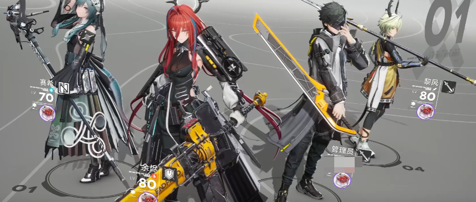 黎风+管理员+余烬+赛希。黎风是主要输出核心,其他3个则是辅助。角色默认是0潜力,如果有条件的小伙伴可以将黎风升到1潜。武器搭配方面黎风采用“负山”,管理员携带“钢铁余音”,余烬携带“昔日精品”,赛希则没有特别的要求,6星意志高的武器就行。武器基质,黎明优先巧计与暴击,有敏捷更好。管理员优先巧计,为了增加失衡效果。余烬优先刷充能效率和医疗,提升回血,打深巢好用。赛希刷高等级智识基质。