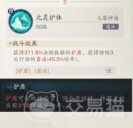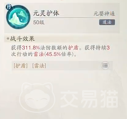其实顾名思义,元灵护体就是一个能让我们一开局就可以获得高护盾的能力。这样就能够避免一开始就受到别人大量的攻击或者伤害,在接下来的回合中获得更多的优势。另外作为一种元婴级别的神通,我们要达到50级,也就是元婴境界之后。