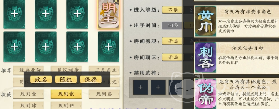 伪帝还有一个专属技能,就是亮出自己身份的时候,对所有角色造成一点伤害,属于范围性技能,这个技能是很强力的,尤其是场上都是残血的情况,直接亮出身份扣血,直接多个阵营的人,给自身的收割能力更上一层楼,其玩法还是很独特的,就是对于武将的选择要求比较高,还需要根据场上的情况下灵活变化,这样方可获胜。