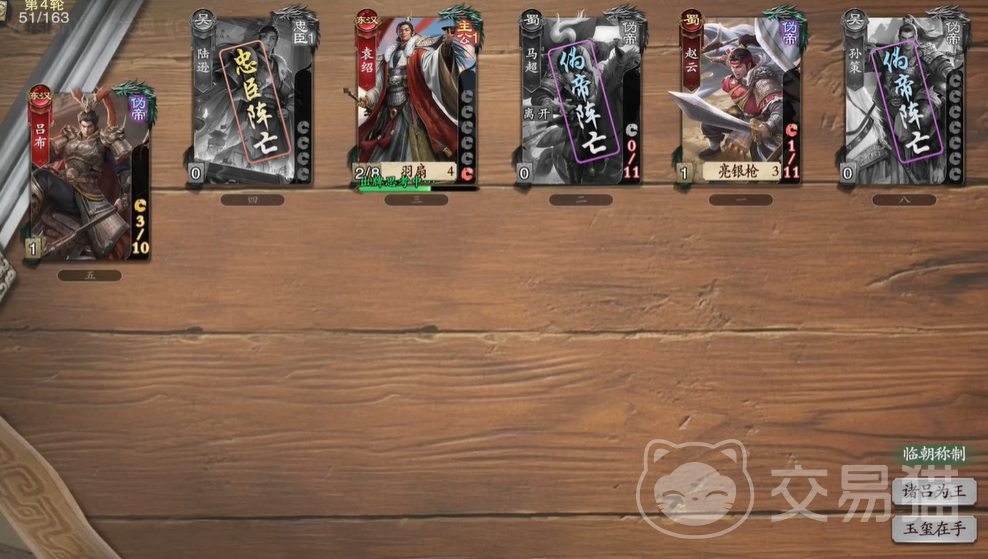 这就需要伪帝前期是需要辅助主公的,否则主公在面对四人反贼包围的情况下是很容易被杀死的,所以伪帝还需要使用治疗卡牌帮助主公存活下来,当场上所剩无几的时候,就可以开始亮出自己的身份了,因为基本上双方阵营都没差几个人了,这时候完成收割是最容易的。