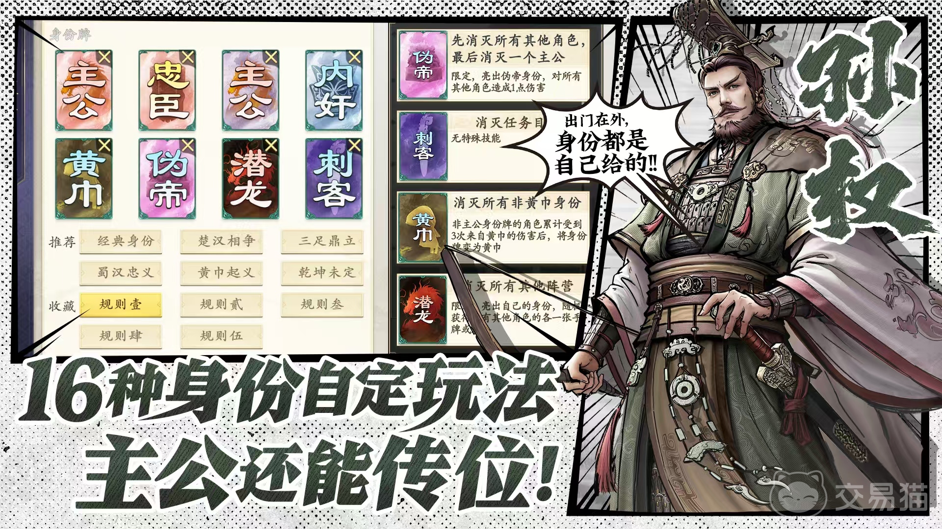 在最关键的策略玩法方面,游戏提供了多种不同的身份,每种身份都有自己独特胜利目标和不一样的技能效果。尤其是独创了主公阵亡后继承身份的设定,更是让战局变得更加精彩,不至于因为主公阵亡而导致战斗结束。相比于传统的身份设定,更加烧脑和有趣。游戏还推出了三持武器的自由搭配系统,让玩家可以根据战场上的实际形式和自己的身份为武将组合装备。例如关羽可以搭配上开山斧、丈八蛇矛等武器,将自身的优势充分发挥出来。另外还有自定义身份的玩法,让玩家之间能够自己创作出好玩的组合。除了竞技对战之外,还推出了pve模式,例如武侯讲武等,在不同关卡中运用不同的策略和技巧才能通关,也增加了游戏的趣味性。