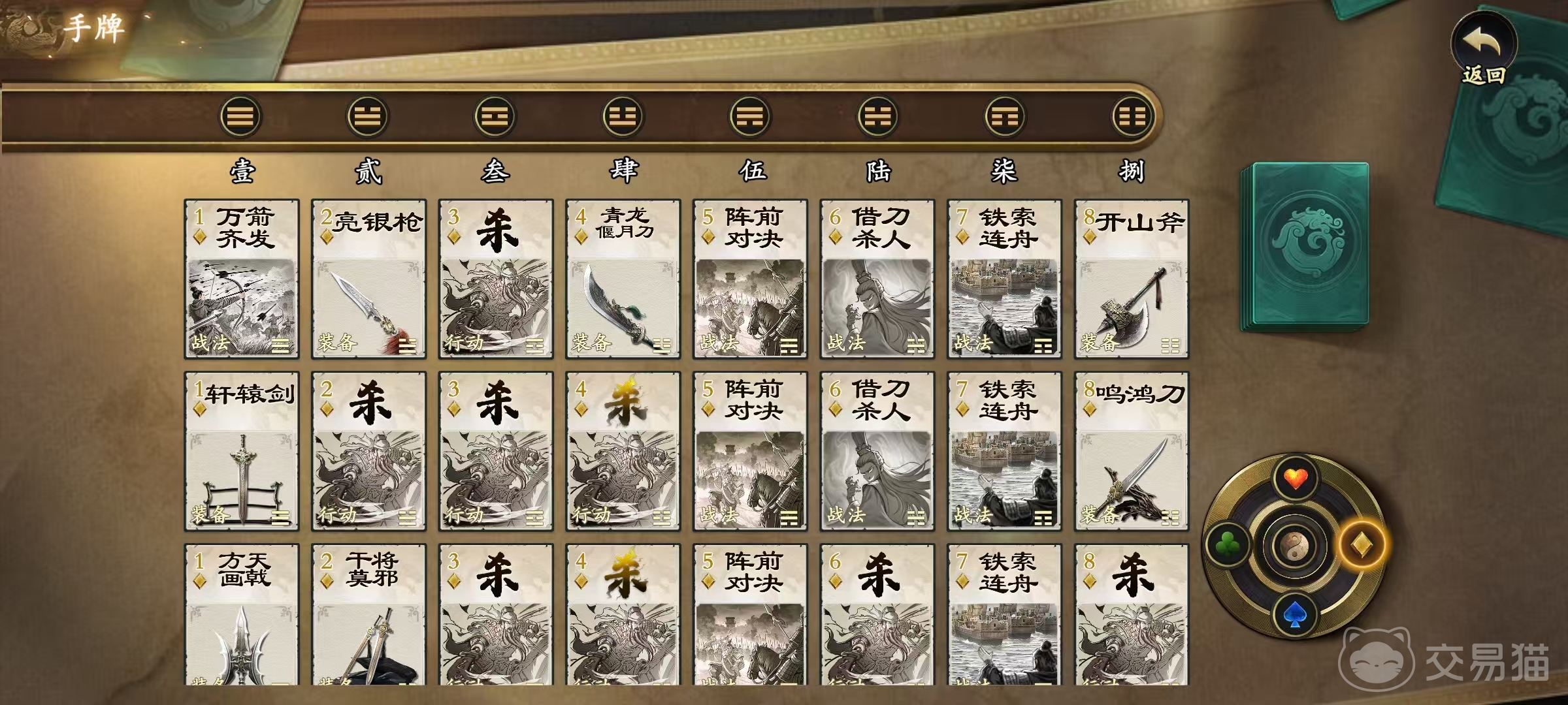 这款游戏有着浓厚的历史文化设计风格,是以古代历史为背景打造的,玩家使用的武将牌,例如诸葛亮、曹操、吕布等,都是历史名将。这些武将的技能也都源自于历史典故,例如刘备的以德服人,周瑜的火烧赤壁等,在卡面立绘和人物台词创作方面也都结合历史典故和史书真实记载,生动还原了这些历史人物的精彩一生和传奇故事。这样在竞技的同时也可以感受到历史的厚重和文化魅力。