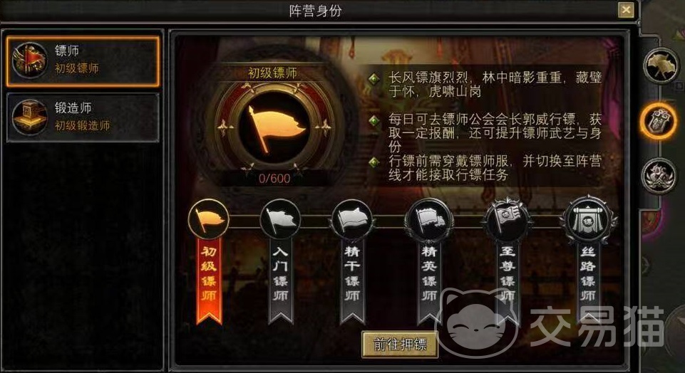 以后首先要做的就是阵营选择,在阵营选择方面,小编比较推荐大唐猛将和绿林豪侠这两个。其中大唐猛将的特点是可以选择镖师跑商,也可以在游戏中去进行锻造装备。绿林豪侠能够选择盗贼去劫镖,还可以炼制一些锻造所需要的材料,然后让锻造师去打造成品。选择好阵营之后,接下来就是升级,升级应该优先去完成主线,先把所有能接的主线任务全部清掉。