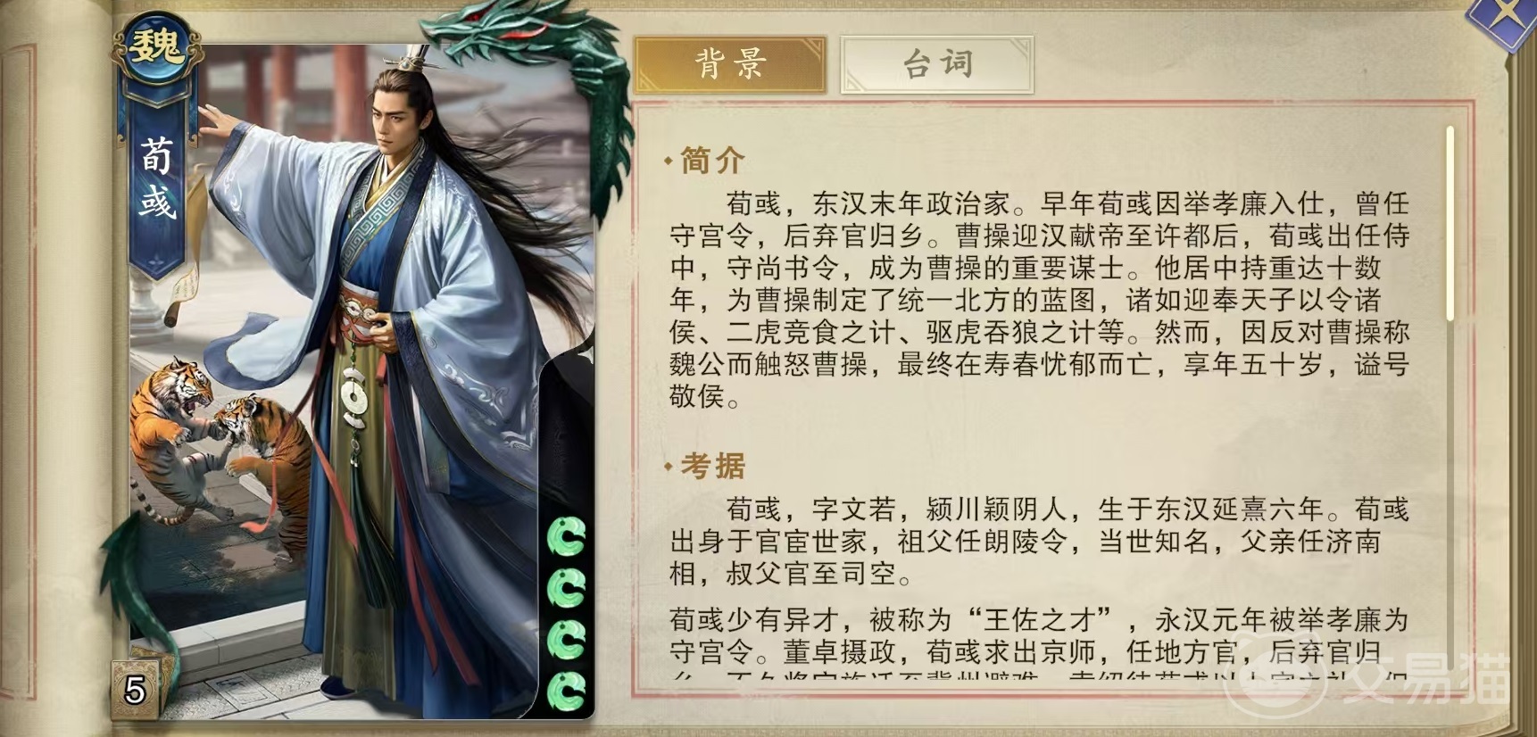 看到这里大家就知道代号杀荀彧技能有哪些了吧,三个技能中有两个都是限定技,足以说明这些技能效果非常强大,一旦使出来就可以使场上的局面瞬间出现逆转。当然这也给使用者带来了更大的压力,一定要找准机会使用。
