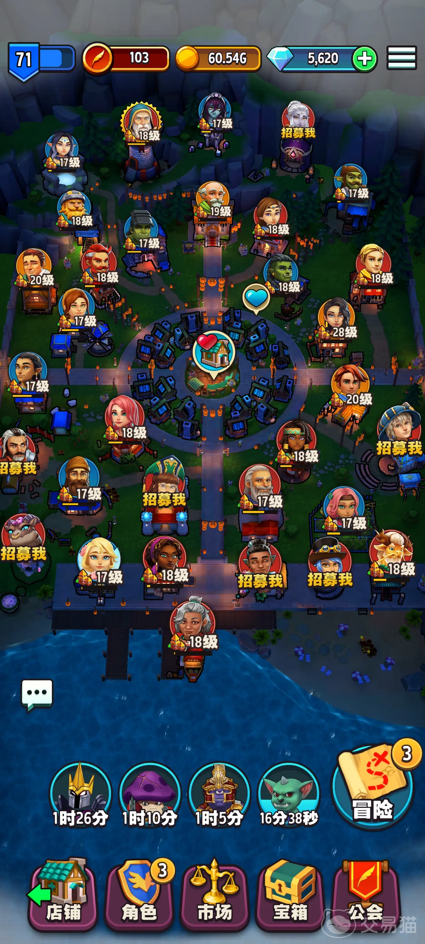 英雄培养与冒险系统形成闭环经济,玩家需为战士、法师等职业搭配专属装备,例如圣骑士套装可提升防御,巫师法杖增强法术强度。派遣英雄挑战地下城可获取稀有材料,但需平衡队伍配置,坦克前排抗伤、输出后排爆发、治疗维持续航。近期新增的 "技能重掷骰子" 功能允许重置英雄技能,配合威力强化品提升属性,使冒险胜率大幅提升。值得注意的是,英雄等级决定可装备的道具阶级,需同步推进店铺与英雄的成长节奏。
