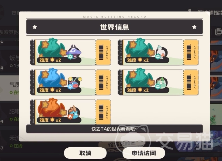 想要获得更多的花种精灵,还有一个方法就是通过社交活动的赠送或者是交换玩法了,这也是游戏宣传的打破界面的社交玩法。在花种图鉴上找到自己还没有获得的精灵,能看到当下拥有这个精灵达的玩家,点击互动就能进入他的世界来查看,建立社交后就能交换或者是赠送了。