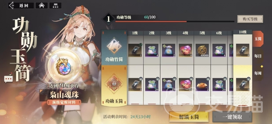而每周任务则更注重对玩家一周内综合表现的考量,可能包括累计完成一定数量的特定任务、达到一定的战力提升等等,只要玩家每天达到140点功勋值,就可以得到对应不同阶段的奖励,这些奖励内容从珍稀的游戏道具到实用的资源材料,都是包含在内的,对于新加入游戏的玩家来说,还有一个特别的福利,当新人达到20级时,便能够获得枭山魂珠这种顶级觉醒材料,这对于角色的培养和实力提升有着极大的帮助。