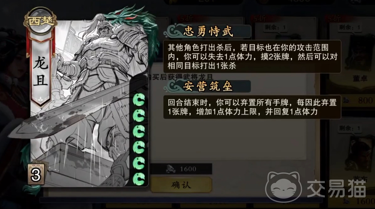 忠勇恃武是龙且的一技能,只要其它玩家的攻击目标在龙且的攻击范围内,龙且就能选择失去一点体力并从牌堆里额外摸两张牌,还能用杀再对被攻击的目标进行攻击,是很适合用来补刀和收割的神技,虽有扣体力的效果,但总体的收益很高,也使得玩家不管是在忠臣阵营还是在反贼阵营都很适合选龙且。