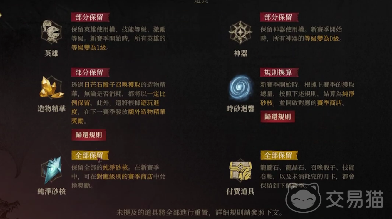 第二个是神器,神器虽然仍然保有使用权,但是等级会被彻底重置为零级。