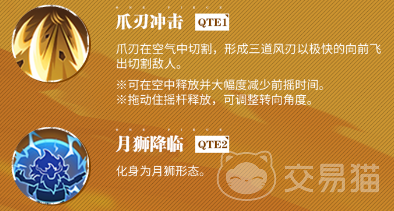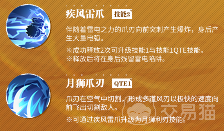 另一项强力技能,疾风雷爪,带有雷电之力,爪刃向前突刺并在爆炸时造成大量伤害。技能释放后,敌人将受到持续的雷电伤害,这项技能的两次成功释放,甚至能提升技能1的威力,强化你的输出能力。而月狮爪刃QTE1 将月狮的威力发挥到极致,形成多道风刃向前飞出,迅速切割敌人。与“疾风雷爪”配合使用时,可以提升猫蝮蛇的爆发力,将敌人迅速压制。