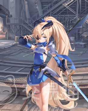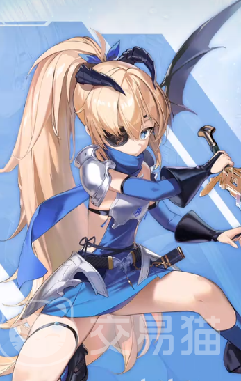 角色是一个留着金色马尾的女生,经常会穿着深浅两种蓝色搭配的服装,蓝色的瞳孔加上忧郁的眼神,会看起来让角色很有距离感,头上深色的触角加上眼罩,会更加增添角色的冰冷感,这是一个主打火力型的角色,在战斗的时候会使用步枪攻击。