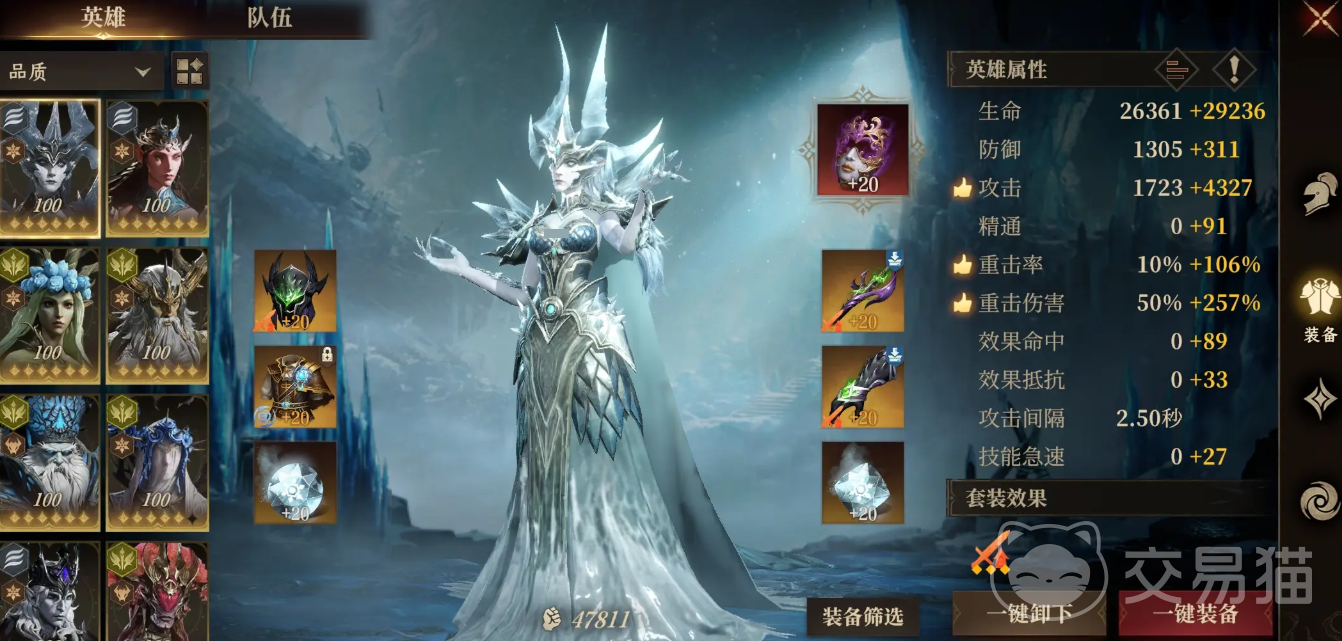 提到冰队自然要提到这个核心角色,优秀的群体清场,除了对付海王的时候输出稍显乏力外,几乎是pve全场景表现优秀。PVP的强度也很高,凭借着斩杀机制稳居竞技场前几名。