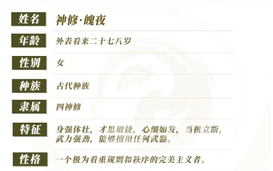 这就是一个古代生灵,同样也是洛一很好的朋友为了能够守护整个世界,就选择成为神修。非常注重于友情和爱情,愿意为了亲人付出一切,甚至包括自己的性命。