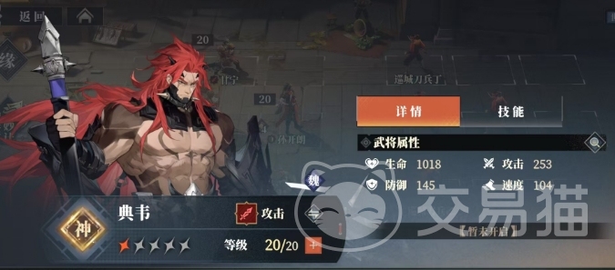 而且孙开朗在释放技能的过程中还具备回血功能,增强了队伍的整体坦度和续航能力,这样的4+2阵容基本架构已经形成了一个具备回复、驱散和输出能力的较为全面的组合,而对于多余的两个位置,则有多个优秀的选择可供玩家根据自身需求进行搭配,例如典韦,这是一张在PvE内容中表现极为出色的神卡,大多数玩家都能够轻松获得。