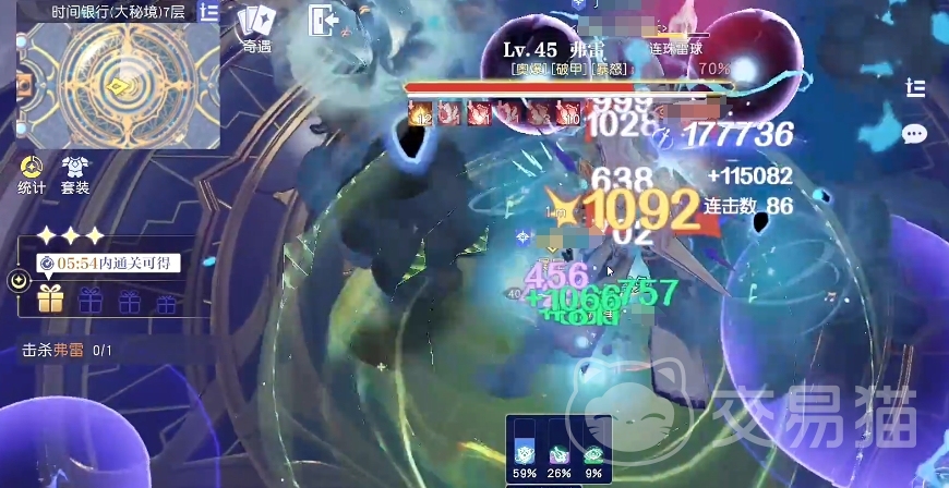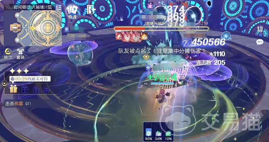 此外场地中还存在紫球这一特殊元素,当玩家吃下一个紫球后,能够增加自身10%的攻击力,并且可以减少受到雷霆之怒10%的伤害,经过实际测试一个拥有3w血量的角色需要吃下16个紫球才能在雷霆之怒中存活下来,鉴于其对攻击力的提升作用,紫球最好分配给主要输出角色食用,这样能够有效提升团队的整体输出能力,增加通关的几率,基本按照这样的策略就可以顺利过关了。