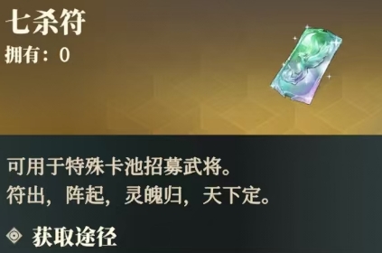 三国志幻想大陆2枭之歌七杀符怎么用 三幻2七杀符作用及获取攻略
