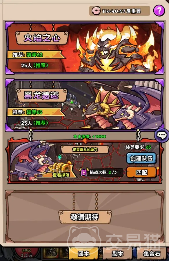 在该玩法当中,每天会随机开放3个不同的副本给大家去挑战,而在周末的时候,所有的副本都会开放,都可以前去挑战;例如“绯红布道院”,“暗熔之国”,“狱火裂隙”等等的副本。