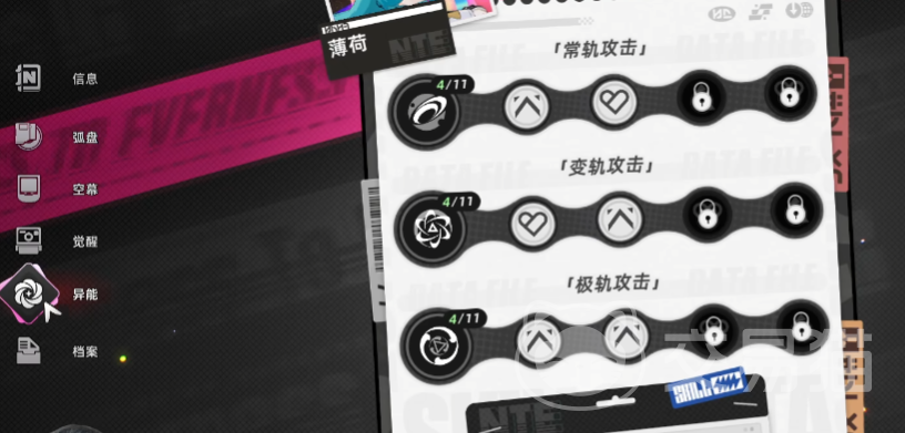 角色技能分为四种类型:常规攻击,即普攻;变轨攻击,即小技能;极轨攻击,即大招;入轨攻击,则是QTE入场技。此外,角色还拥有两个被动技能,与异能环合存在联动机制,未来或许还能解锁第三个被动技能。每个角色的技能体系各具特色,战斗时需根据其特性合理搭配队伍。队伍由四个角色组成,分别承担主C、副C和辅助三种职能,在角色详情界面可查看其类型标签。角色名字上方的图标代表其属性,游戏中共有六种属性,不同属性之间的组合可以触发异能环合,例如主角便是光属性。