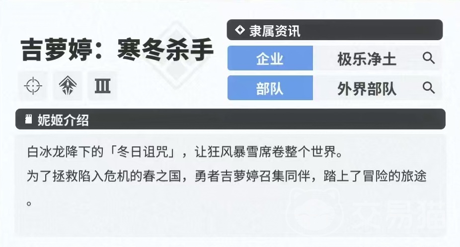 大家现在就清楚胜利女神新的希望吉萝婷寒冬杀手怎么样了吧,大家只有了解清楚技能效果后,才能判断是否是经常使用的类型,还是适合一些特定场景的角色。吉萝婷寒冬杀手就是在特定场景下可以有好发挥的人物,只要使用得当,依然有上场的机会。