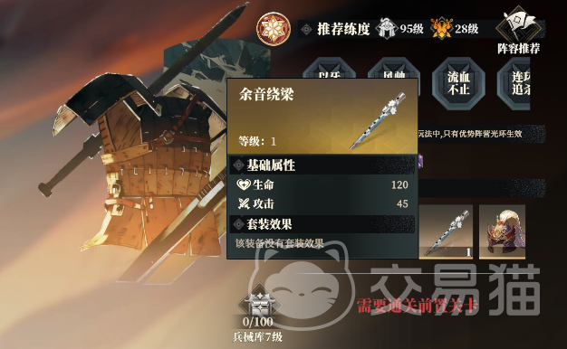 武器装备是在玩家解锁试炼中的兵械库后才能获得的,但是兵械库并不是那种可以反复刷的关卡,而是打完一层就到下一层,通关奖励会给到一些装备,因此高稀有度的装备在游戏前期是比较稀缺的。