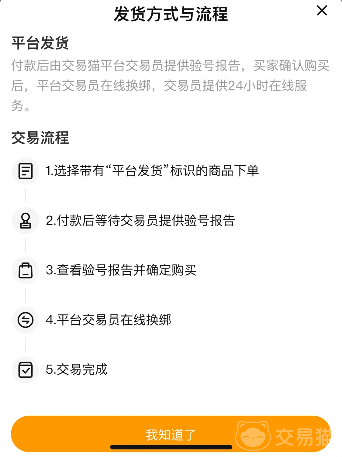 第二,整个出售过程规范。通过抵押担保的规则,平台规避了交易风险,买家钱款由交易猫暂时托管,等待买家收到账号和密码,再给卖家支付钱款。卖家享受钱款极速到账的福利。